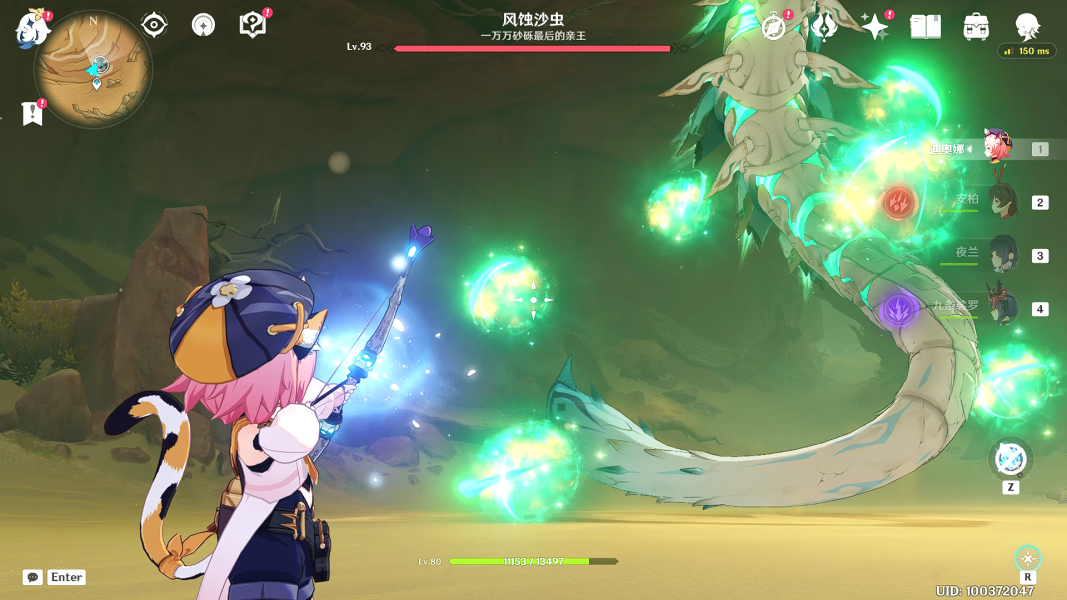 (2)来到沙虫BOSS处,等待沙虫使用风蚀弹,我们用元素扩散风蚀弹即可