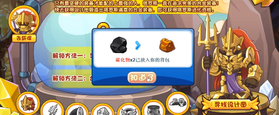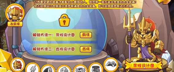 3、重复的设计图可以用来合成未获得的设计图,锻造完成所有装备即可获得塔罗斯进化资格;