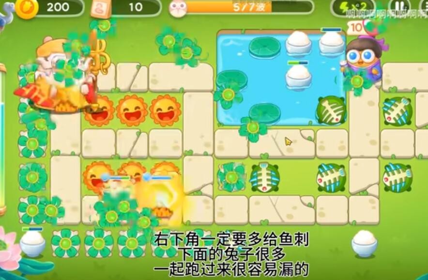 3、右下角一定要多给鱼刺,下面的兔子很多,一起跑过来很容易漏的