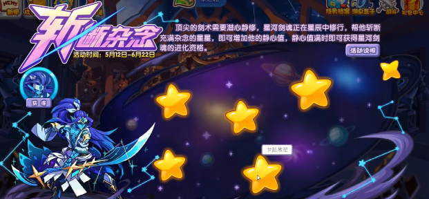 1、鼠标悬浮在星星上可查看星星名称,5颗星星中只有一颗充满杂念,需要小洛克通过名字猜中哪颗是杂念之星;