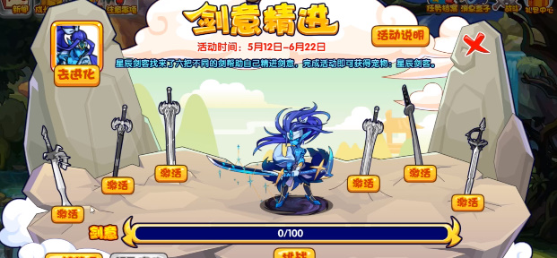 1、成功挑战星辰剑客即可助它精进剑意,激活的剑数量越多,挑战后增长的剑意越多;