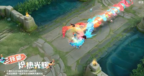 皮肤设计以充满节日庆典氛围的皮皮精灵为主题,安琪拉身着马戏团帐篷样式的撞色裙子,皮皮精灵咬着糖果头绳,原本爱心状的丸子头,变为缤纷多彩的大辫子肆意飞扬,可爱小魔女闪亮登场~特效设计充满庆典般的欢乐感,还有萌萌皮皮精灵一直陪伴着安琪拉共同作战,小精灵还拥有翻跟头、嬉戏的独特动作和彩纸特效哦~