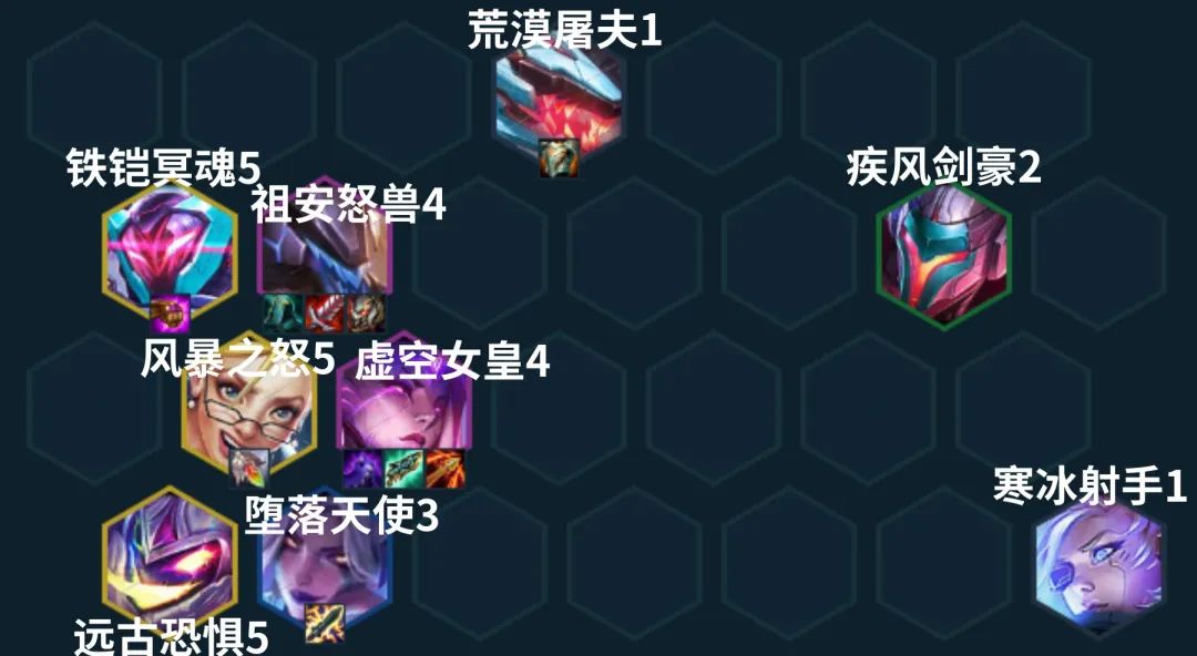 如果八人口嫖到铁男、末日,可以考虑舍弃4斗士,但是一定要对阵容的整体强度有着清楚的认识,不要为了没有装备的五费卡牺牲掉了虚空女皇的输出环境,影响上9的节奏。