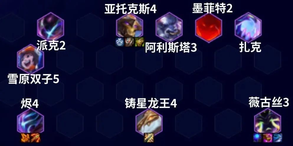 急救用具海克斯在该阵容里是锦上添花的存在,可以大大提升阵容的坦度,飞升/珠光莲花对阵容的伤害增幅也很可观。