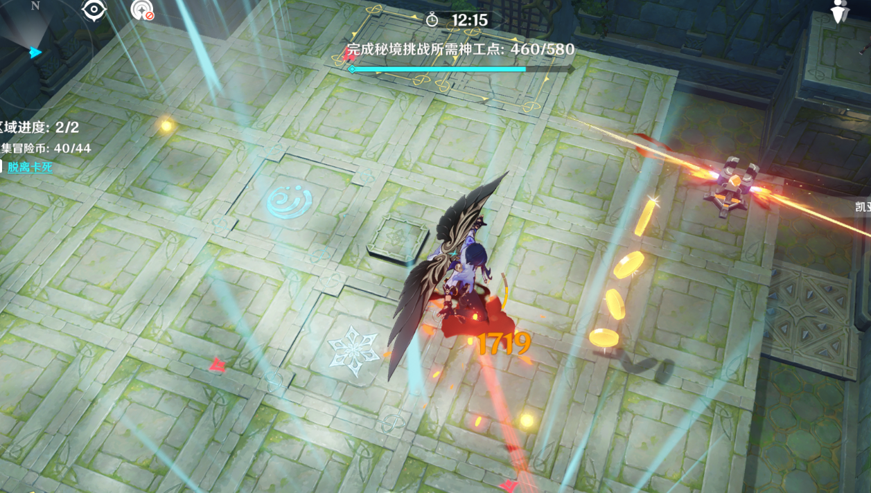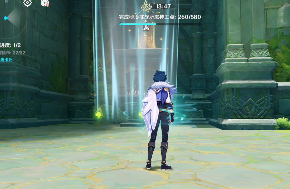 试用角色,随便带一个就行,这里我带的凯亚,腿长跑起来稍微快一点。