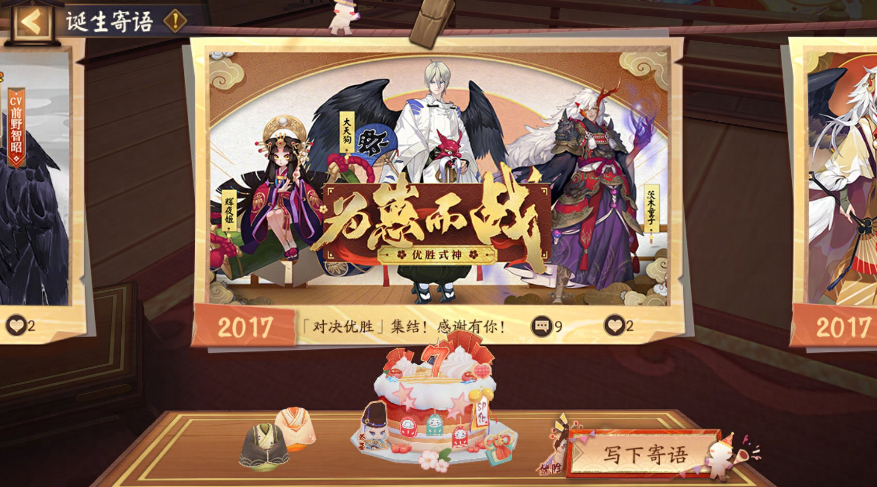 ※诞生寄语:大人在广场中,可以与式神对话,查看式神降临平安京后与大家一同经历的种种美好回忆。大人可以对各项回忆进行点赞、评论,并送上独一无二的生日祝福!在回忆的末尾,欢迎大家畅想崽崽的未来,共同为Ta许下最真诚的愿望~
