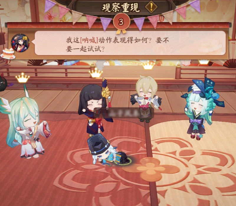 ※「诞生庆典生日派对」:庆典开放期间(每月10日~12日)每日20点,将进入热闹的派对游戏环节。大人前往广场回答式神提出的问题,并操作角色模仿式神们做出的动作,即可获取大量蛋糕和礼物!记得准时参加哦~