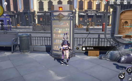 1、首先来到图示位置,面前能看到一个发光的售货机。