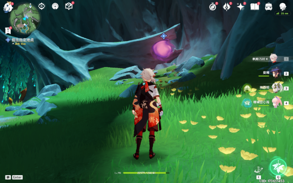 3、之后到达任务指引处,可以看到一只仙灵,这时我们上岸即可;