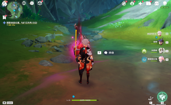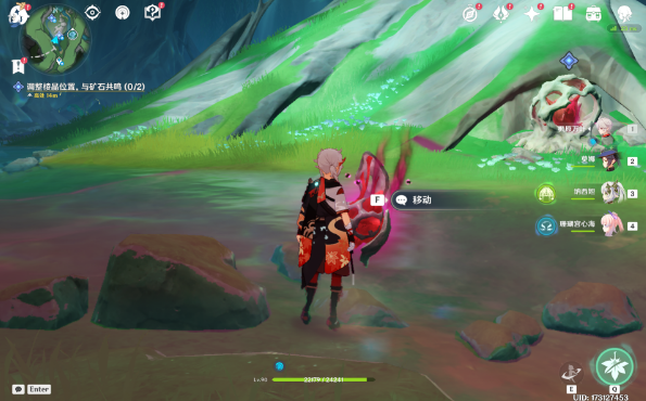 11、首先我们移动前面的这个棱晶,将其放到你认为合适的位置,这个棱晶是可以附近范围内随便拿起和放下的,我们放下后,攻击它使其与矿石共鸣即可。接下来我们继续拿起棱晶,将其摆放到另一个棱晶的方向,激活另一个棱晶;