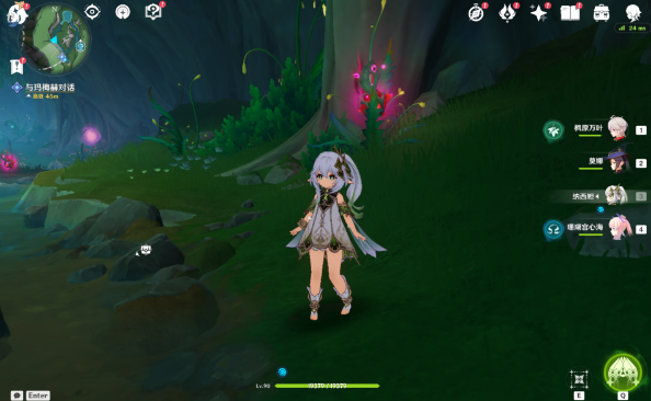 3、看到仙灵后,一直跟随仙灵即可,之后我们继续跟随任务指引,开启沿途锚点,最后可以在图示锚点旁开启与玛梅赫的对话;