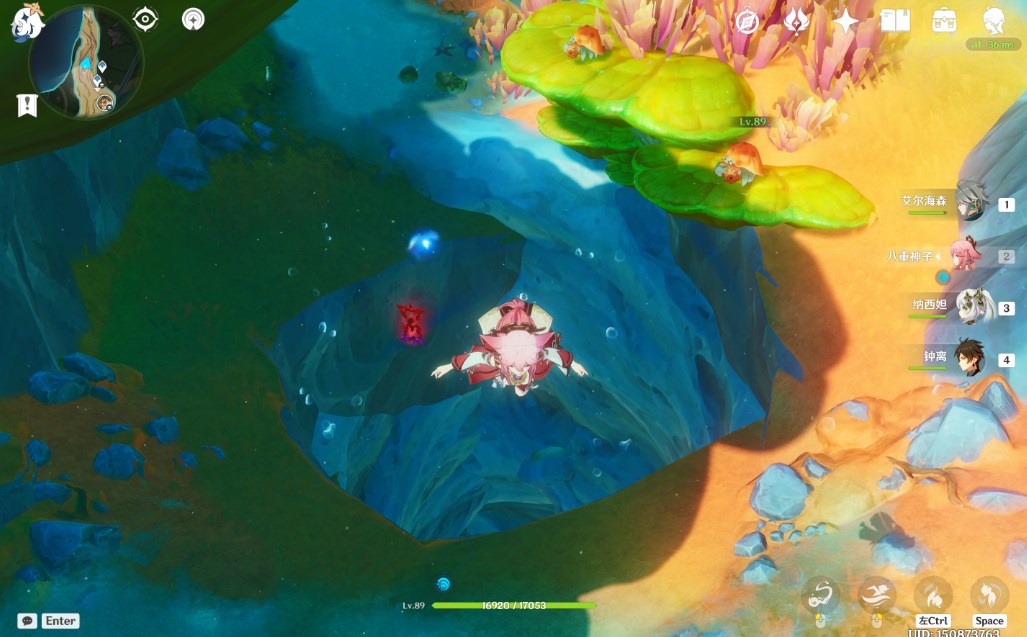 第二步、来到传送锚点之后我们直接笔直走往前下潜。