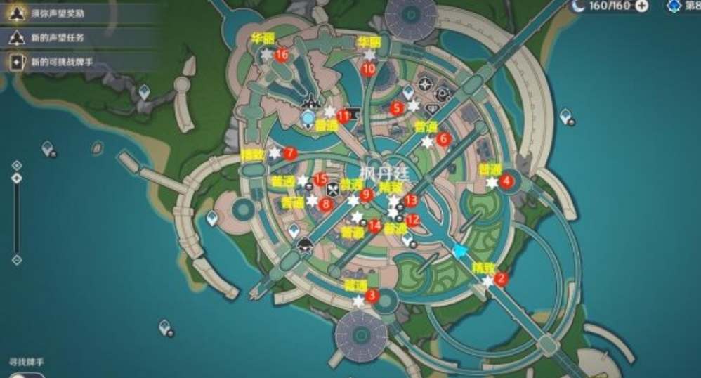 枫丹廷的宝箱分布位置图如下图所示,大家可以对照编号位置去逐一收集宝箱,避免遗漏;