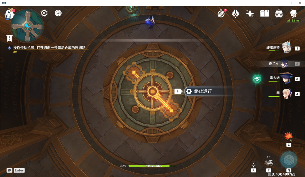 2.操作传动机阀,打开通向一号备品仓库的连通路:等到出现如下图案时停止。