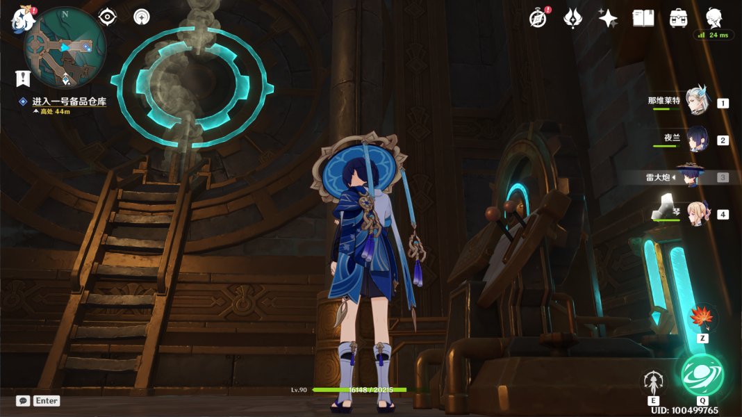 3.进入一号备品仓库:放入刚才拆的传动器,然后使用旁边的机关。