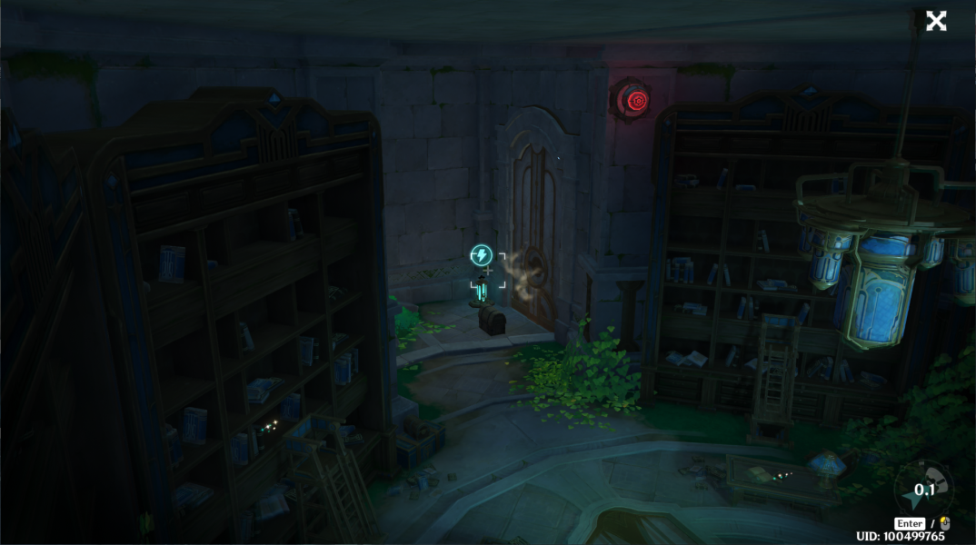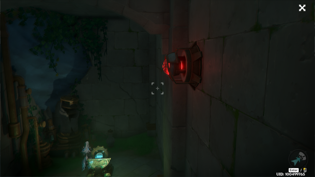 ②回到入口附近,交互这个芒性机关,开门。