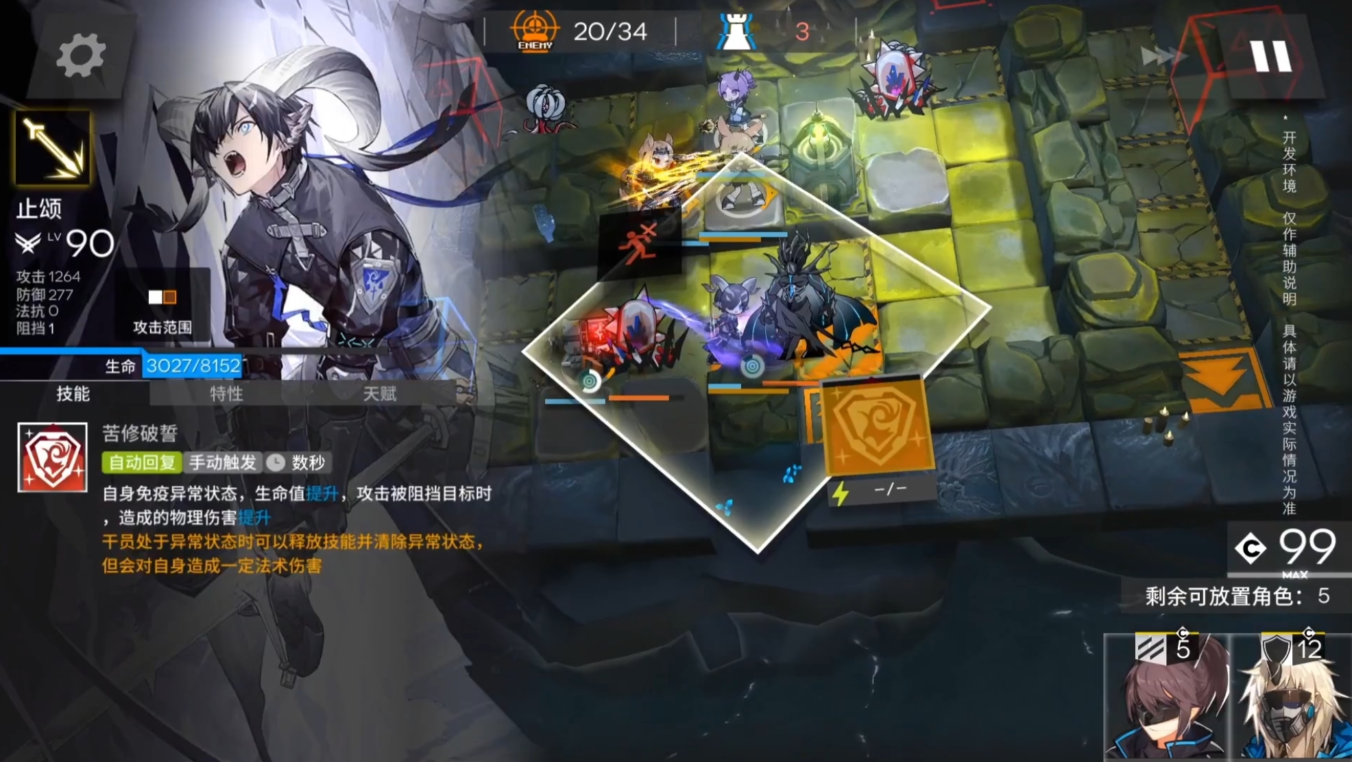 干员处于异常状态时可以释放技能并清除异常状态,但会对自身造成一定的法术伤害