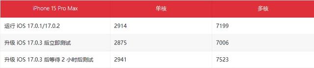 对着iOS 17.0.3发布,有博主也对 iPhone 15 Pro发热与性能进行测试。从测试数据来看,iPhone 15 Pro系列设备升级到最新版后,发热问题有所改善,且跑分变化不大,甚至还有一定的上升。