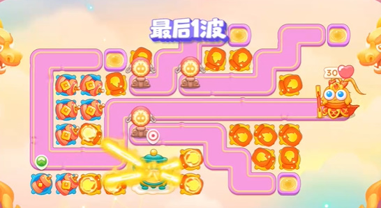 4、然后就尽量的升级炮台就可以了,并且在转角处放上两个鞭炮就可以很快的清理兔子了、