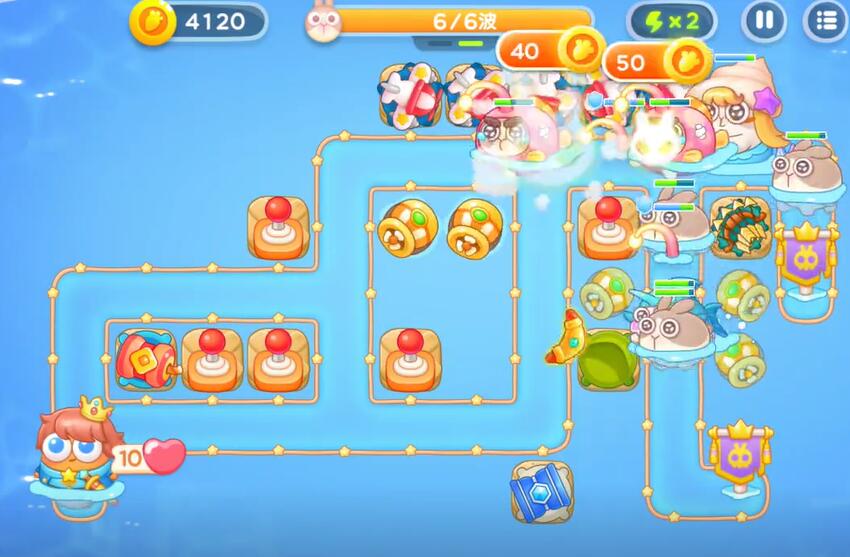 6、建造更多的防御塔进行输出,清理掉所有的兔子,即可完成本关的挑战。