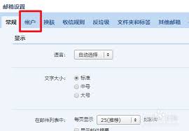 登录成功后,点击邮箱页面上方的“设置”选项。在弹出的设置菜单中,找到“账户”选项并点击进入。